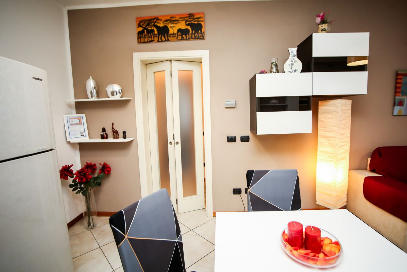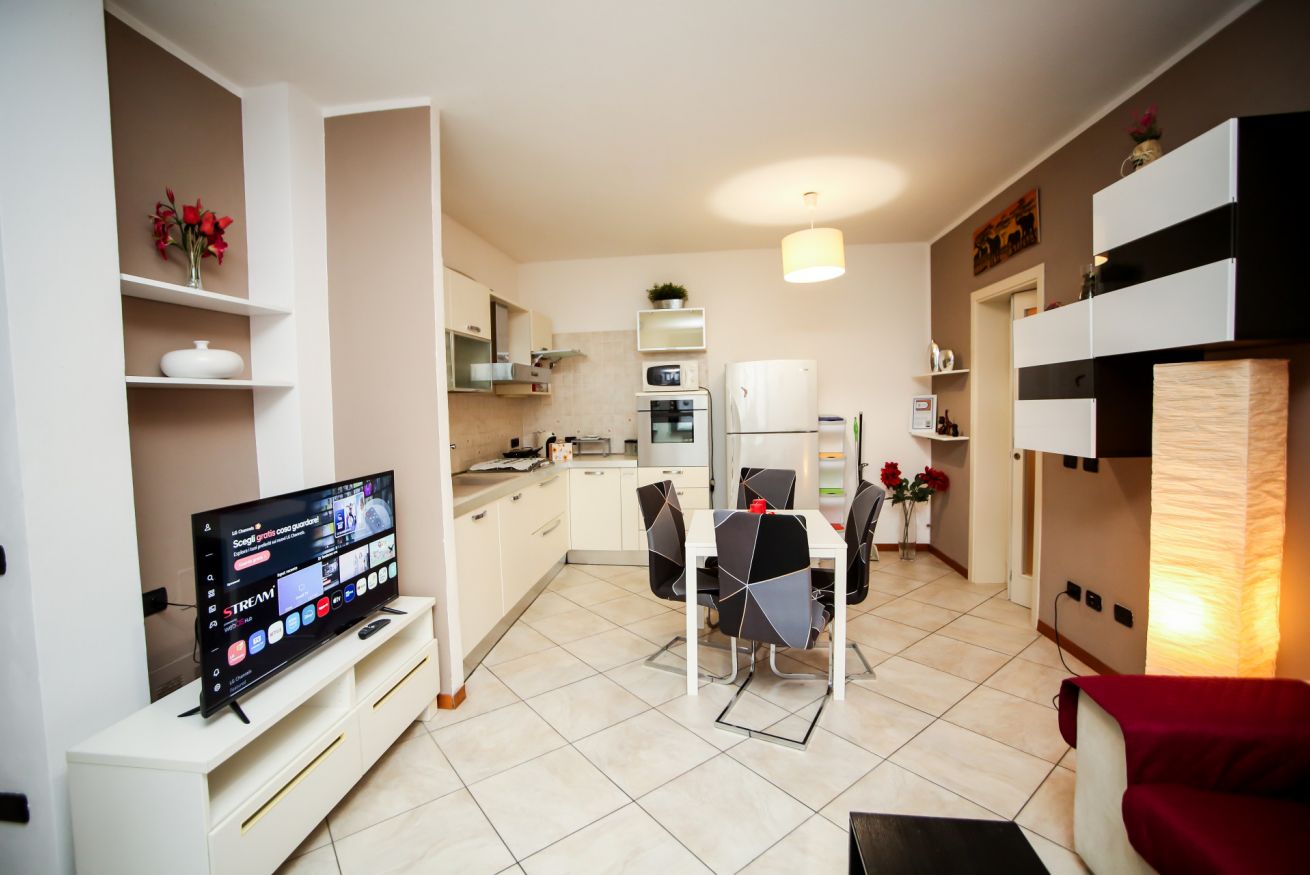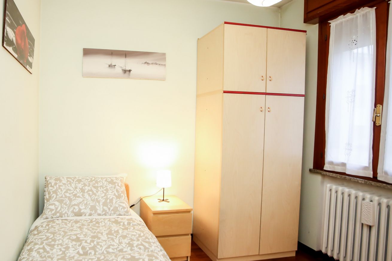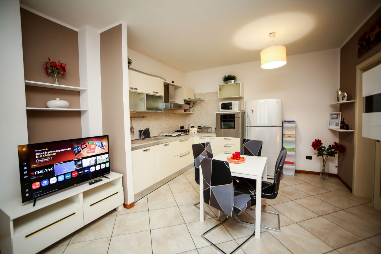 All’interno dell’appartamento si trovano una camera matrimoniale accogliente e luminosa, perfetta per riposare dopo una giornata intensa, e una camera singola ideale per chi desidera uno spazio riservato e confortevole. La sala con angolo cottura è organizzata per offrire tutto il necessario per preparare pasti in autonomia, mentre il bagno moderno garantisce praticità e comfort.