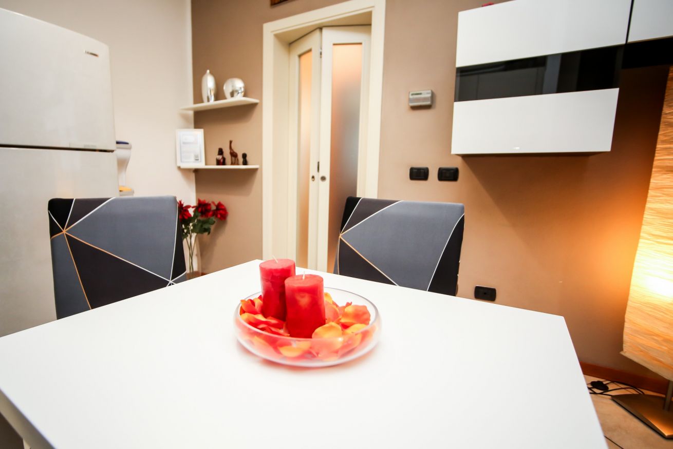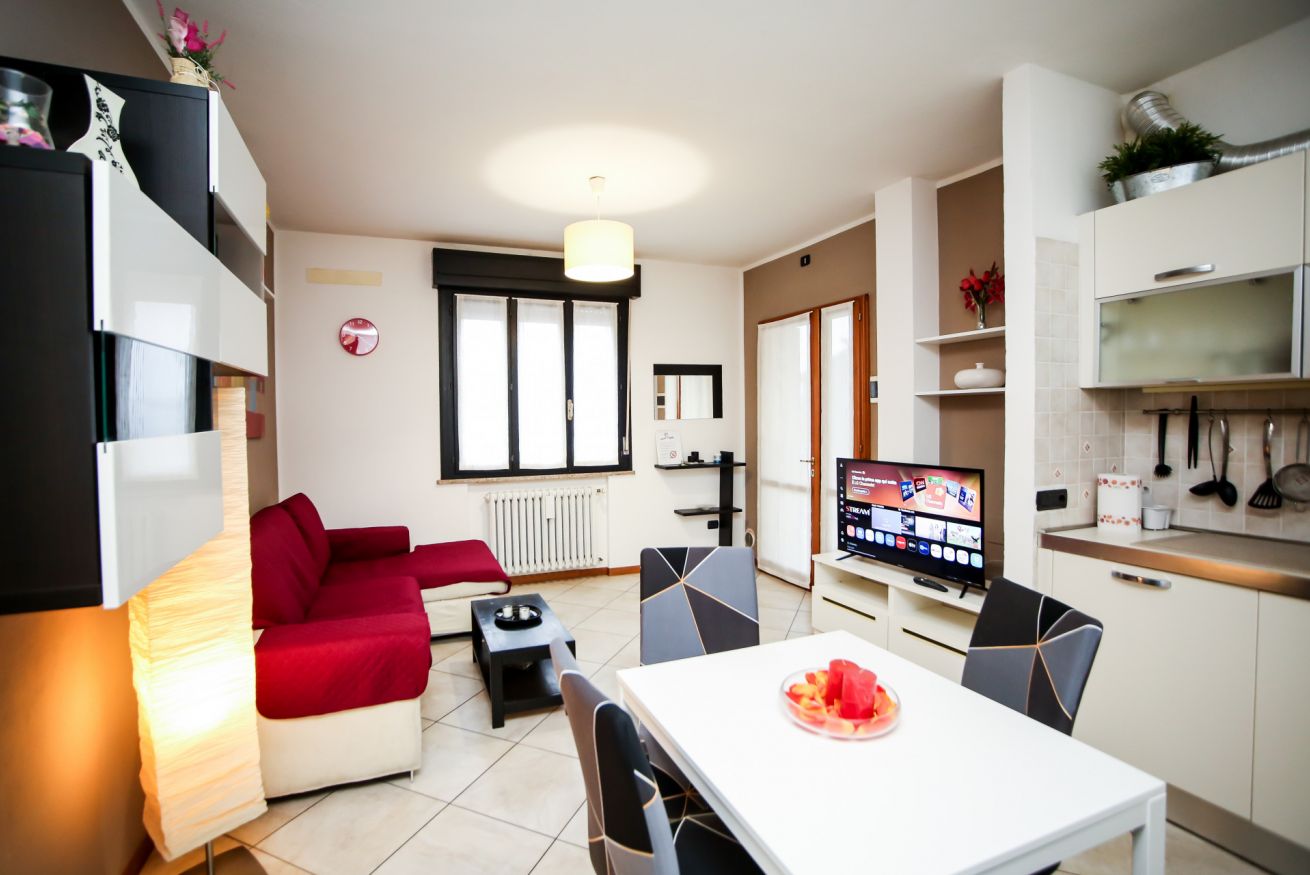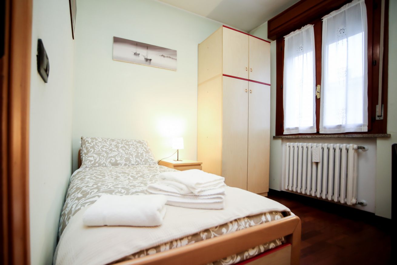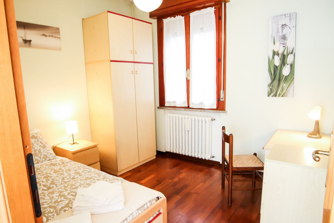 All’interno dell’appartamento si trovano una camera matrimoniale accogliente e luminosa, perfetta per riposare dopo una giornata intensa, e una camera singola ideale per chi desidera uno spazio riservato e confortevole. La sala con angolo cottura è organizzata per offrire tutto il necessario per preparare pasti in autonomia, mentre il bagno moderno garantisce praticità e comfort.