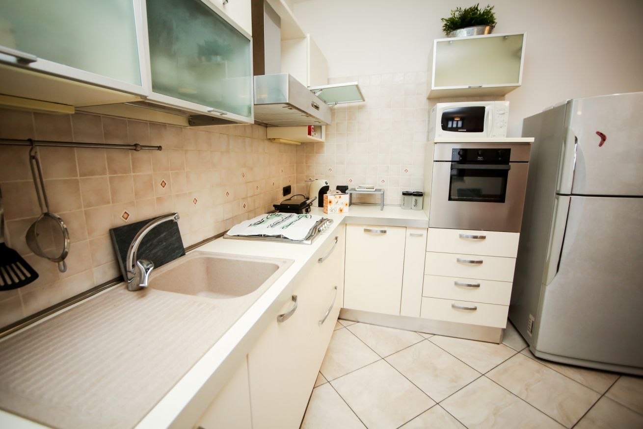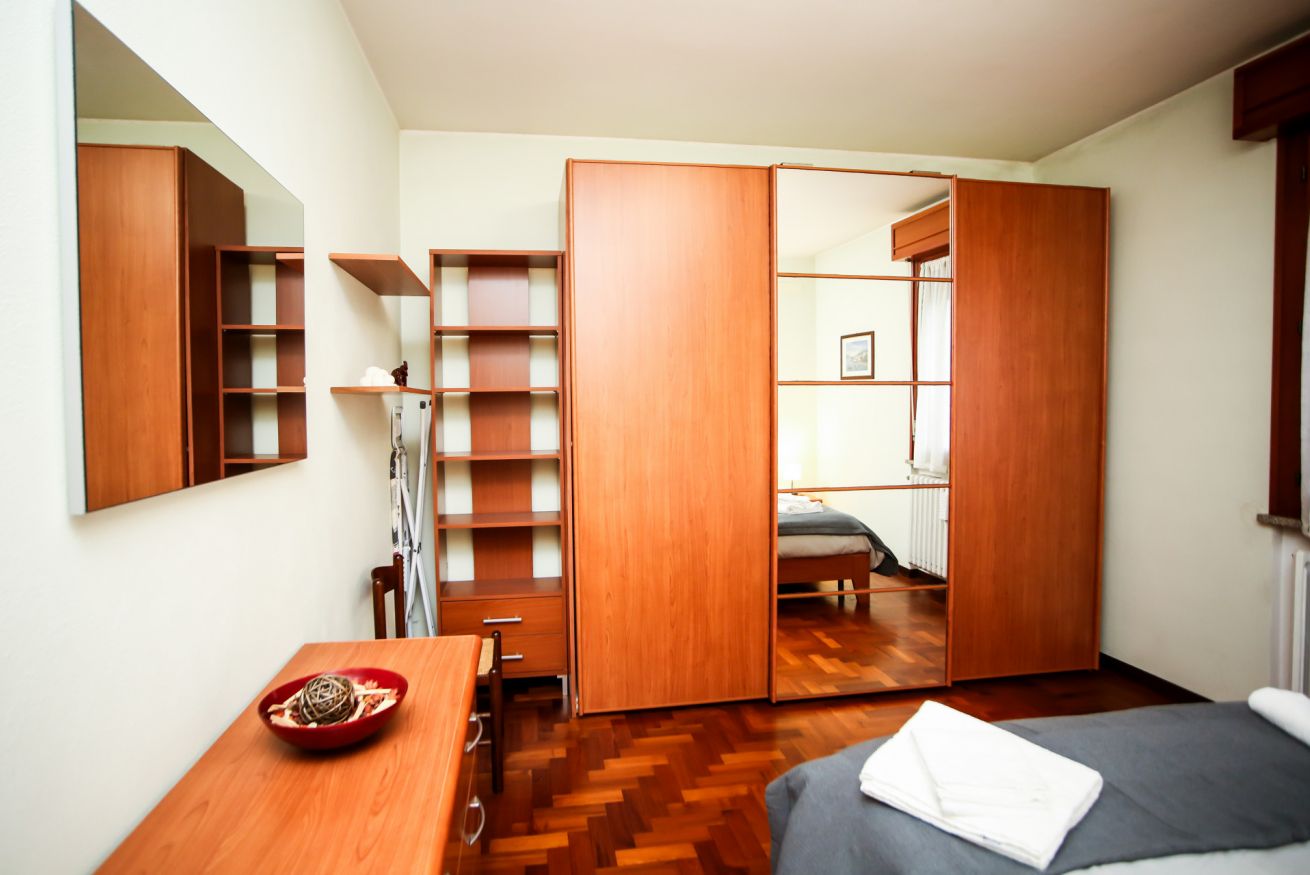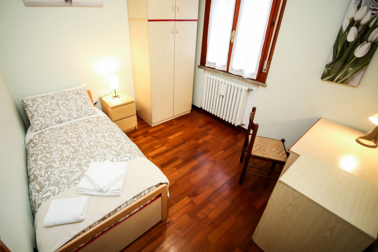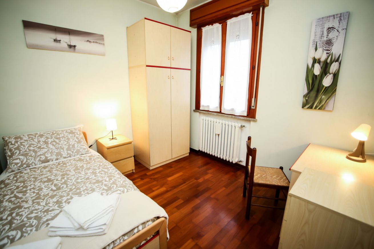 All’interno dell’appartamento si trovano una camera matrimoniale accogliente e luminosa, perfetta per riposare dopo una giornata intensa, e una camera singola ideale per chi desidera uno spazio riservato e confortevole. La sala con angolo cottura è organizzata per offrire tutto il necessario per preparare pasti in autonomia, mentre il bagno moderno garantisce praticità e comfort.